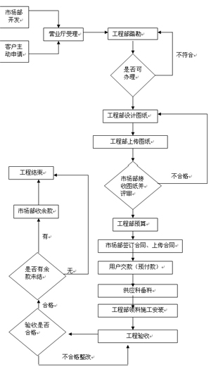 市場(chǎng)部:主要負(fù)責(zé)開(kāi)發(fā)新用戶,負(fù)責(zé)簽定費(fèi)用合同,和用戶協(xié)商施工中遇到的問(wèn)題.